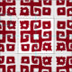 Tribal key style ancient greek inspired repeat patterned fabric. Ideal for quilting and other sewing projects. Key pattern is in dark red and the background colour can be changed to suit your requirements, currently white. Art and design by Sarah Trett.