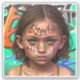 Little dark skinned girl with green eyes, painted face and urban graffiti street art background futuristic ai art.
