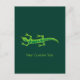 Green lizard icon with tribal shapes on body. Custom text. Seamless pattern at back side.