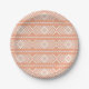 Seamless tribal pattern with lines, arrows, rhombus and triangles shapes decoration on coral background