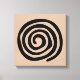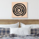 A tribal spiral swirl petroglyph image in black against a customisable background colour. This primitive tribal art is energetic and makes a strong impression. This art canvas is simple yet striking with primitive art line work, thick black bold lines against a vibrant fully customisable background colour.