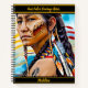 A Native Indian woman stands confidently, her face painted with traditional designs. Vibrant feathers cascade from her long braids, reflecting her cultural heritage against a luminous backdrop.