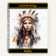 This artwork depicts a Native Indian woman with a striking headdress made of feathers