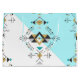 Tribal secret geometry design with turquoise, tan, black and white colours.