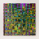 This challenging jigsaw puzzle flaunts an abstract tapestry in a variety of shades of blue, pink, purple, yellow, green, black and more more!