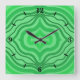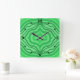 Tribal Tropical Wavy Green Lines Geometric Art Square Wall Clock