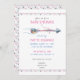 Watercolor arrow embellished with feathers & ribbons in shades of pink, blue, aqua and grey with tribal border and matching pattern on the back of the invitation. Can be customised for any occasion.
