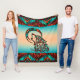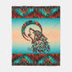 This is a Unique "One of a Kind" Tribal Wolf Fleece Blanket! It Features a Native American Tribal Wolf on an Orange and Turquoise Background...Surrounded by a Southwest Border in Turquoise, Orange and Black!