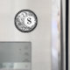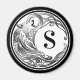 Tribal design featuring a howling wolf in a crescent moon with shades of black, grey and white. Customise the background colour, customise the background colour and personalise your initial. By Paxdomino