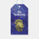 Animal Parade Cute Triceratops Dinosaur Gift Tag features our cute triceratops standing in a snowy landscape with a starry night sky with a playful wavy orange and blue border painted by our talented children's illustrator Traci Van Wagoner. On the front above the playful animal art art is a customisable greeting and on the back you'll find the cute dino from the back with your family's name. Make sure to add your personal information or delete the words to make these custom tags your very own. A fun way to tag all your gifts this holiday season. Share a smile today. Custom designs available.