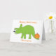 A triceratops dinosaur Halloween card for kids. The front features a triceratops dinosaur with a jack-o-lantern on his tail and a spider is happily dangling off his horn The inside Halloween message be easily personalised. This cute triceratops dino Halloween card is great for dinosaur lovers.