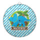 Triceratops Dinosaur; Sky Blue & White Stripes Dartboard
