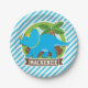 Triceratops Dinosaur; Sky Blue & White Stripes Paper Plate