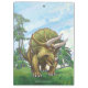 Animal Parade Cute Triceratops Dinosaur Gifts and Accessories brought to you by Imagine That! Design features our original art of a cute triceratops from the front and the back standing in a green prehistoric landscape with a textured blue sky and a fun wavy purple border painted by our talented children's illustrator, Traci Van Wagoner. This playful triceratops dino is great gift for kids of all ages, and is sure to bring a smile to the faces of all dinosaur lovers on your gift list.