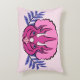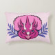 A girly pink and purple triceratops portrait flanked by abstract purple leaves is the subject of the graphic artwork on this rectangular pillow.