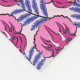 Feminine pink and purple triceratops faces are interspersed with a leaf pattern to make up this fun graphic design.