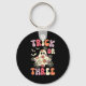 Trick Or Three 3 Years Old Birthday Groovy Ghost H Key Ring