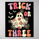 Trick Or Three 3 Years Old Birthday Groovy Ghost H Poster