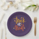 Trick or Treat Candy Corn Halloween Paper Plates features fun brush type and cute candy corn illustrations.