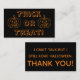 This card is for children (or adults!) who can't speak when they go trick-or-treating and want to explain to people why. The front says "Trick or treat!" and the back says "I can't talk but I still love Halloween. Thank you!"