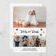 Photo Halloween card featuring a photo collage and paw prints on the front and a skeleton ghost with a jack-o'-lantern at the back. Easily personalise this pet photo Halloween card with your photos, the family name and text. This Halloween card perfect for cat or dog lovers can be turned into any colour using the customisation tool.
