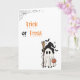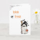 This fun “Trick or Treat” greeting card features a cute ghost in a witch hat with a pumpkin basket — perfect for kids, friends, or Halloween party invites. With dripping orange and black letters and flying bats, it captures the playful side of Halloween without the scare.