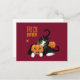 This postcard features playful geometric black and white cats with the words 'Trick or Treat' in a Halloween-themed design. One of the cats is even wearing a pumpkin as a Halloween mask, adding an adorable touch to the overall fun and festive look.