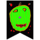 Festive Halloween decorations. 16 Flags to display outdoors for fun during October and Halloween, or indoors on a fireplace mantel, etc. Trick or Treat is written in orange text on a black background. Leave photo images, or Upload your own. Cute smiling orange pumpkin with red eyes and big stalk, and green zombie pumpkin, cute ghost in the woods, and smiling wicked witch wearing her black hat and dress in the woods are inbetween words and on the ends of bunting. Fun for your Halloween party or Halloween Birthday party, and for your little trick-or-treaters to see. Original Artwork and Photography by TamiraZDesigns.