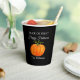 Happy Halloween, trick or treat, pumpkins, paper cups. Please Personalise it with your details.