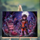 The moon hung low, casting eerie shadows across the abandoned city. Sarah, clad in her battle-worn, fantasy-inspired bikini armour, stood at the edge of a desolate square. Tonight was Halloween, and in this post-apocalyptic world, the undead had their own twisted traditions. Instead of candy, they offered brains. - A horde of shambling zombies approached, their eyes glowing with an unnatural hunger. Sarah gripped her sword, her heart pounding in her chest. She had seen this before, the annual pilgrimage of the undead to the city's centre. But this year, something was different. A glint of mischief sparkled in the eyes of some of the zombies. - As the horde drew closer, Sarah noticed that a few of the zombies were carrying small, spherical objects. They were brains, preserved in jars and wrapped in tattered cloth. It was a macabre twist on the traditional Halloween treat. - A zombie, larger and more grotesque than the others, stepped forward. It held out a jar of brains, its face contorted into a grotesque grin. Sarah hesitated. She knew the dangers of accepting a gift from the undead, but the temptation was too great. - With a gulp, Sarah took the jar. As she did, a surge of energy coursed through her. The brain, imbued with the essence of the undead, was a powerful artefact. It would grant her temporary strength and resilience. - Emboldened by her newfound power, Sarah charged into the horde of zombies. Her sword flashed and whirled, cleaving through the undead with ease. The zombies, surprised by her ferocity, retreated in disarray. - As the last zombie stumbled away, Sarah stood victorious. She had not only survived the night but had also acquired a powerful artefact. With a smirk, she raised the jar of brains to the moon. It was a Halloween heist, a victory against the undead, and a testament to her courage and resourcefulness. - AI generated Artwork by me "Chris at Zazzle" made & modified this Work with Shakker AI and Photoshop.