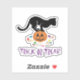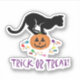 A black cat stands on top of a pumpkin surrounded by Halloween candy!