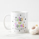Halloween coffee mug featuring the text: "Trick or treat" in black, orange green and purple letters surrounded by stars with your custom name or text below. All colours are customisable in the design tool.