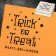 Halloween rubber stamp featuring the text: "Trick or treat" surrounded by stars. Customisable text "Happy Halloween" below. Use for product packaging, crafts and scrapbooking etc.
