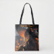 Two anime style witches, one either side of the tote bag, one side has the words "Trick or Treat" and the other has "Happy Halloween !". Generative content.