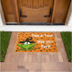 A fun Halloween doormat featuring a silly green frog in a witch hat with the phrase “Trick or Treat, Wipe Your Feet!” on an orange polka-dot background. A playful and family-friendly way to welcome trick-or-treaters and guests while adding seasonal charm to your entryway or porch.