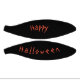 A Halloween themed design which see the words Trick or Treat against an orange moon background. A black silhouette head of a Witch wearing a black hat with spider attached is placed upon the 'T' of Trick.The Witch is surrounded by three (3) bats flying in black silhouette. The black silhouette of a sleeping bat is hanging from the letter 'k' in the word Trick. Under the word 'Treat' lies two (2) lollipops and three (3) sweets (candies or lollies) all in black silhouette. Perfect for the mischievousness in us all & to celebrate the tradition of Halloween. The text 'Happy Halloween' allows for customisation of your choice.