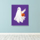 Premium Wrapped Canvas wall hanging decor printed with a Trick Or Treating Ghost With Pumpkin Candy Bucket original animated graphic art design artistic illustration by TheFabricSeal print on demand shop at Zazzle.com #ZazzleMade ©️Original. https://www.zazzle.com/store/thefabricseal