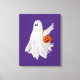 Trick Or Treating Ghost With Pumpkin Candy Bucket Canvas Print