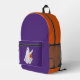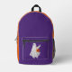 Backpack all over print cut sew style storage bag printed with a Trick Or Treating Ghost With Pumpkin Candy Bucket original animated graphic art design artistic illustration by TheFabricSeal print on demand shop at Zazzle.com #ZazzleMade ©️Original. https://www.zazzle.com/store/thefabricseal