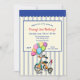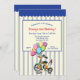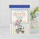 A juvenile invitation showing a watercolor tricycle with a bouquet of colourful balloons. The background is a blue and off-white stripe with a scalloped awning border. (Vectors by Vecteezy). The card is easy to customise with your wording, font, font colour, paper shape and choice of paper type. Not exactly what you're looking for? All our products can be custom designed to meet your needs at no extra charge. Simply contact us at heartfelthelper@gmail.com. Coordinating products available: Just ask us!"