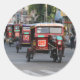 A row of tricycles in the streets of Tacloban City, Leyte, the Philippines. These tricycles (mopeds with a sidecar) are used for public transport.