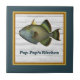 This amazing vintage image of Pseudobalistes fuscus, commonly called the Blue or Yellow-Spotted Triggerfish, is a cheery addition to your home. Customise the text to add your name, or a different room if you display the tile elsewhere. Make sure to personalise the text where indicated. It's bordered in a complementary gold, orange, and deep teal blue.