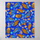Trilobites on dark blue background (kids pattern) poster
