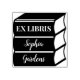 An Ex libris design with a stack of three books motif. Ex Libris on the top most book with customisable first and last names on the lower volumes in a stylish script font. The design can also be additionally customised e.g. to accommodate longer names etc.