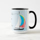 Fun, original design Nautical mug with colourful sailboats. "Trim Your Sails" is a nautical term that means go with the winds of change, or go with the flow, as the sailors need to trim the sails to catch the changing winds. Great gift idea! Customise with boat name and port of call.