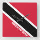 Trinidad and Tobago Flag Dazzling Patriotic Square Wall Clock in the colors and the elements of the Trinidad and Tobago national flag covering the front of the clock. National flag colors are complemented with the text "Trinidad and Tobago" on the bottom. Text is fully customizable using "Customize it!" feature. Feel free to change it, remove it or add your own. This charming design is the stunning gift and the great show piece on the wall. © CountriesOfTheWorld