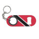 Trinidad and Tobago Flag Red Black White Patriotic Keychain Bottle Opener with the Trinidad and Tobago flag in Crimson Red, Black and White colours printed on the front and back side of the bottle opener. Colours are combined in a way that gives the best flag representation on a small space available. Trinidad and Tobago Keychain Bottle Opener is the perfect gift for the Trinidadian proud of their heritage.