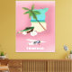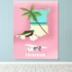 Trinidad mark map illustrated travel poster cartoon print or a beautiful sandy beach and a wooden fishing boat.