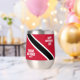 Celebrate Trinidad & Tobago Independence Day with this striking August 31st stainless steel stemless wine tumbler, which features the brilliant black, red, and white hues of this twin-island nation's flag. Customise messaging as desired. Reverse shows identical design.