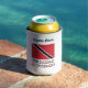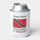 Can cooler has the Trinidadian and Tobagan Flag with the words TRINIDAD & TOBAGO underneath the flag. Words appear in the red, white, and black colours of the flag. A place to add a name above the flag to personalise for yourself or as a gift for a treveler.